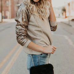 Step into style and comfort with our Sequin Stitching Long Sleeves. This versatile and trendy piece is perfect for casual outings or simply lounging at home. The unique sequin stitching adds a touch of sparkle, making it a standout choice in any wardrobe.