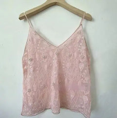 Turn heads in our Sequin Beaded Cami Top, the perfect party piece for a night out, festival, or special occasion. This shimmering v-neck top is crafted from sheer mesh and detailed with hand-embroidered sequins and beads, creating a glamorous yet delicate look.