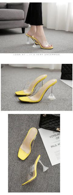 • PVC Upper: Crystal-clear straps for that “barely there” effect