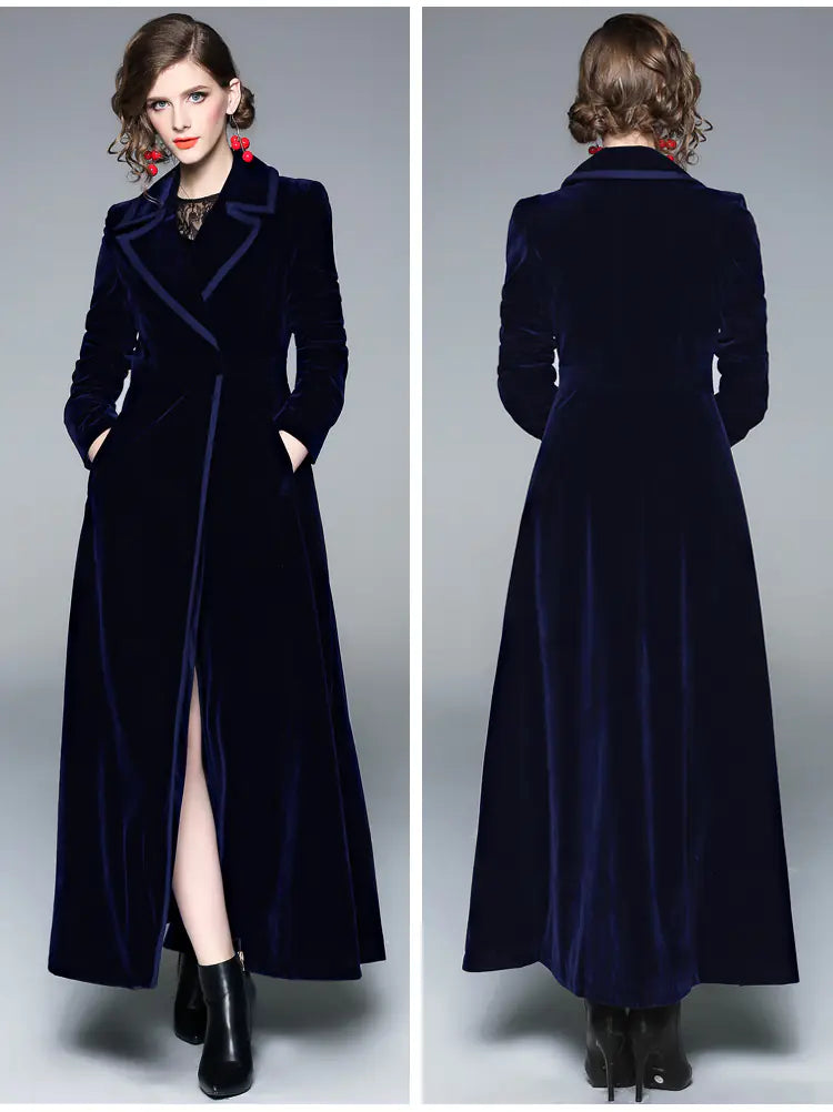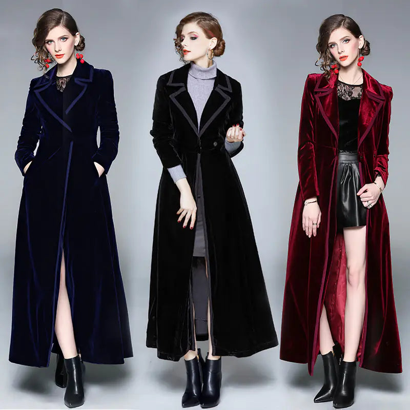 Elegant Long Velvet Trench Coat – Women’s Evening Winter Coat